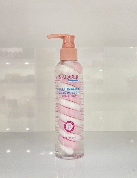 حاوی نیکوتین آمید و ترکیبات نرم کننده آبرسان و روشن کننده آبرسانی مداوم به سلول های پوست تولید کلاژن پوست برای حفظ خاصیت ارتجاعی قدرت مرطوب کنندگی و هیدراته کردن نفوذ عمقی به لایه های پوست رفع تیرگی و و لک و قرمزی بدن بافت سبک ، جذب سریع و بدون چربی: 200ml
