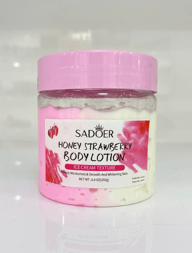 رطوبت رسان پوست رفع خشکی و رفع ترک و پوست های مرده رایحه عالی و فوق العاده خوردنی توت فرنگی و هلو روشن کننده فوق العاده پوست دارای مواد مغذی مناسب پوست ترمیم کننده پوست شفاف کننده پوست درخشان کننده پوست۲۵۰g
